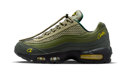 Designed in conjunction with the London-based streetwear brand, the Corteiz x Nike Air Max 95 ‘Sequoia’ makes over the retro running shoe with refreshed materials and a military-inspired color palette. Gradient olive green tones are executed on the upper, featuring a netted base with wavy leather side panels. Embroidered Corteiz branding adorns the lateral forefoot and heel, while the label’s Alcatraz logo graces the tongue patch. Lightweight cushioning arrives via a blacked-out polyurethane midsole, contrasted by exposed Air-sole units tinged in yellow.