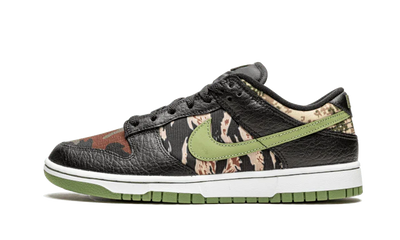 The Nike Dunk Low Crazy Camo utilizes an asymmetric design to display an array of camo patterns. Multi-color camo canvas composes the base while black leather overlays and green Durabuck Swooshes frame each pattern. From there, Nike embroidery on the heel tabs completes the design.